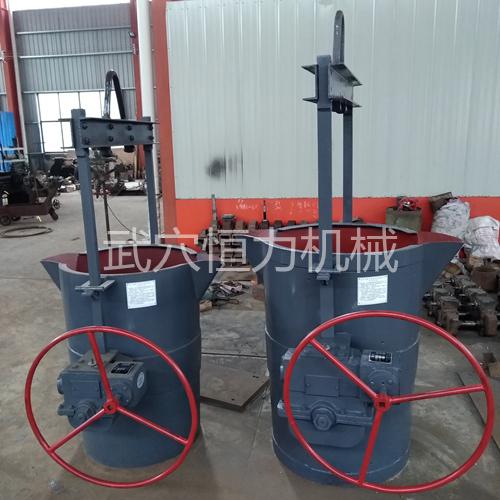 球鐵包(球化包):包桶直徑與高度比值合理,直徑小,鐵水液面與空氣接觸面積小,球化劑燒損氧化少。高度高,鐵水在進行沖入法球化處理時,球化劑產生的氣泡通過鐵水的距離加長,增加了鐵水與球化劑的接觸時間,提高了鐵水對鎂的吸收率,球化效果穩定。澆包吊桿采用鍛件,比鋼板焊接安全可靠;包體鋼板較厚,包底采用錐度、底箍、焊筋相結合,既延長了使用壽命,又確保了安全;包體與吊桿和減速箱均裝有鉸鏈卡板,可隨時鎖定;兩包軸與吊桿間裝有調心軸承,一致性好。分手動和電動兩種,配蝸輪蝸桿減速器;手動操作方便;電動為電機傳動,安全省力;雙向回轉,操作方便。(2T以上可選電動)